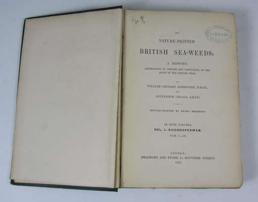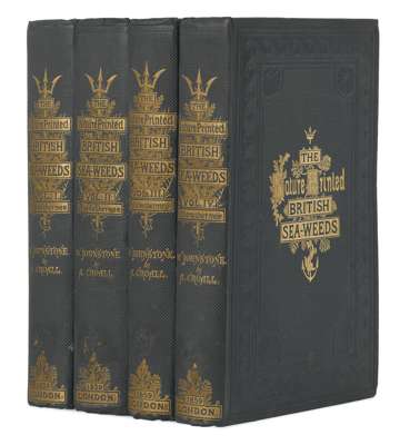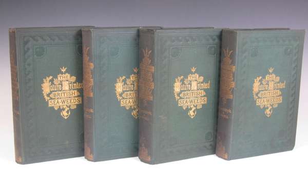 Nature-printed British sea-weeds. London: Bradbury & Evans, 1859-60. 4 volumes, 4to, 1 plain, 1 coloured and 220 coloured plates by Henry Bradbury, original green cloth gilt, RCSI library stamp to titles, some plates working loose