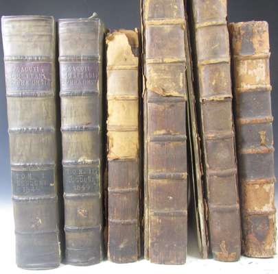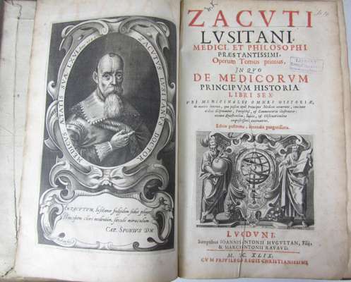 Historia morborum observationibus auctae. Brescia: J.B. Bossini, 1741. Folio, title printed in red and black, engraved frontispiece, engraved title-vignette, headpieces and initials, contemporary calf, RCSI library stamp to title, covers detached, worn; Riviere, Lazare Opera medica universa. Lyons: P. Bruyset, 1738. Folio, calf, very worn; Friend, John Opera omnia medica. J. Wright, 1733. Large folio, engraved frontispiece, calf, very worn, covers detached; Mayerne, T.T. de Opera medica. D. Browne & R. Smith, 1703. Folio, engraved portrait frontispiece, calf, browning, very worn, covers detached; Zacutus, Abraham ben Samuel Operum tomus primus [secundus]. Lyons: J. Hugetan & M. Ravaud, 1649. 2 volumes, folio, titles printed in red and black, engraved portrait, contemporary vellum, joints a little split; all with RCSI library stamp to title-pages (6)