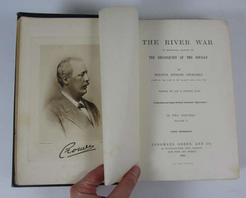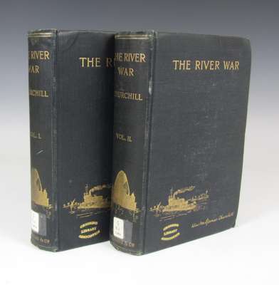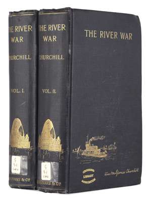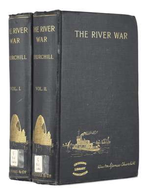 The river war. London: Longmans, Green, and Co., 1900. 2 volumes, first edition, third impression, half-titles, 7 photogravure portraits, 20 folding maps, and other maps and illustrations, 32 pages of advert. leaves in volume 1, original blue cloth gilt, a little spotting, hinges weak, covers slightly soiled with Cruising Association gilt stamps to upper covers and bookplates to free-endpapers (2)