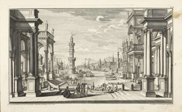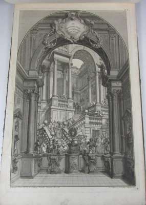 Note: Giuseppe Galli da Bibiena designed sets and decorations for the Habsburg court in Vienna. This volume includes architectural scenes and caprices involving elaborate perspective views, elegant funereal monuments, and scenery from court festivals.