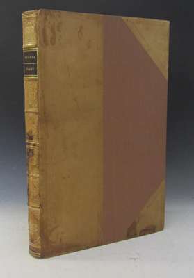 Geographiae Blaeuaniae... Amsterdam: Jan Blaeu, 1662. Volume VI, Book XII only [Scotland only], title-page with hand-coloured woodcut printer's device, finely hand-coloured part-title with some heightening in gold, 49 hand-coloured double-page maps mounted on guards, modern half calf gilt, library stamp of the University of Vienna to title-page, some darkening to several maps, general marginal browning to pages, occasional spotting, some small dampstains to upper margins, small rust hole to margin of 'Lothian', some closed tears to maps and text towards end of volume, mostly repaired, some dampstaining to spine and slightly to covers [Koeman 2:402Yh, Amsterdam variant whereby 'Fifae Pars Orientalis' appears with pp.83-83 as verso]