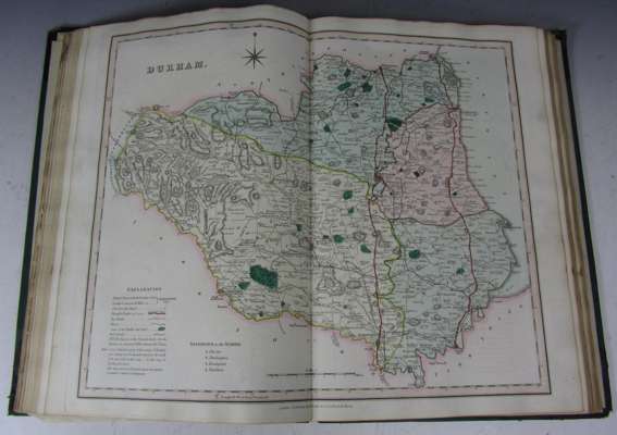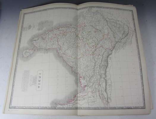New British atlas... London: Henry Teesdale, 1831. Folio, 3 folding maps and 43 (of 45) double-page maps, Leicestershire and Northamptonshire lacking, later dark green half morocco, a little spotting and slight closed tears to folding maps, other maps largely clean with occasional slight soiling, upper cover detached, covers and spine rubbed; Johnston, A.K. A selection of 10 loose double-page maps, c.535x645mm. each, hand-coloured in outline, [North America, South America, United States and Texas, Canada, Turkey, India, West India Islands, South East Peninsula and Malaysia, China and Asia], probably taken from The National Atlas of Historical, Commercial, and Political Geography, c.1850 (11)