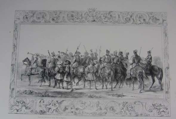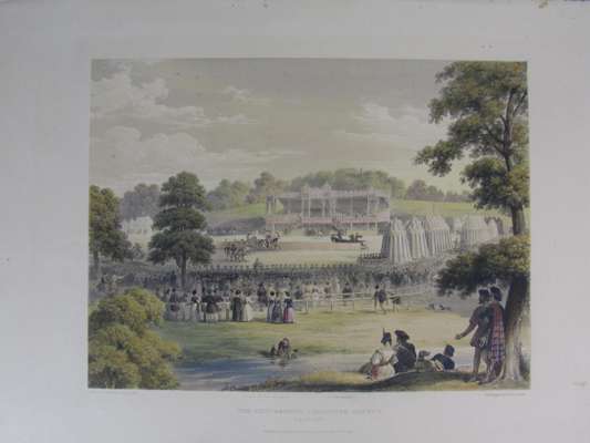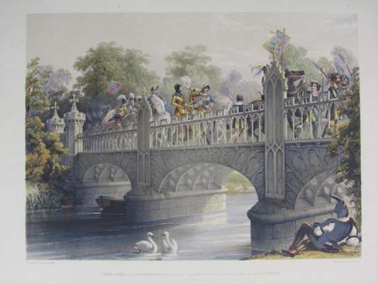 The Eglinton tournament. London: Hodgson & Graves, 1840. Folio, hand-coloured lithographed title-page, 8 hand-coloured lithographed plates, blind-stamped cloth gilt, spine lacking, plates loose, some marginal darkening and spotting, some corners torn, covers very faded; The Eglinton tournament London: Colnaghi & Puckle, 1843. Folio (55x39cm), 21 (of 22) coloured lithographed plates, 22 (of 23) leaves of plate descriptions, yellow endpapers, green quarter morocco, some spotting and soiling, rubbed, loss to spine, upper cover detached; The Eglinton tournament London: Colnaghi & Puckle, 1843. Folio (63x45cm), 21 (of 22) plain lithographs, green quarter morocco, some spotting, darkening and soiling, rubbed; and a small collection of ephemera; sold not subject to return (3)