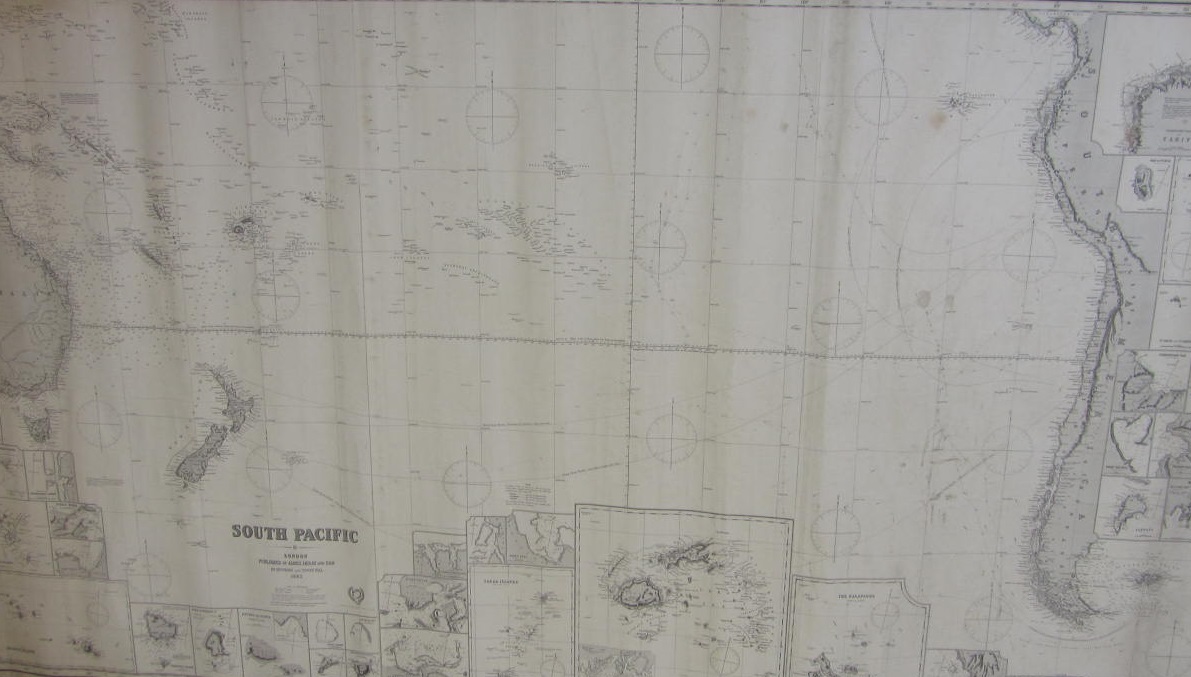 South Pacific. London, 1883. Chart number 135, c.187x103cm, blue-back rolled chart, slight soiling, 14cm closed tear to left side