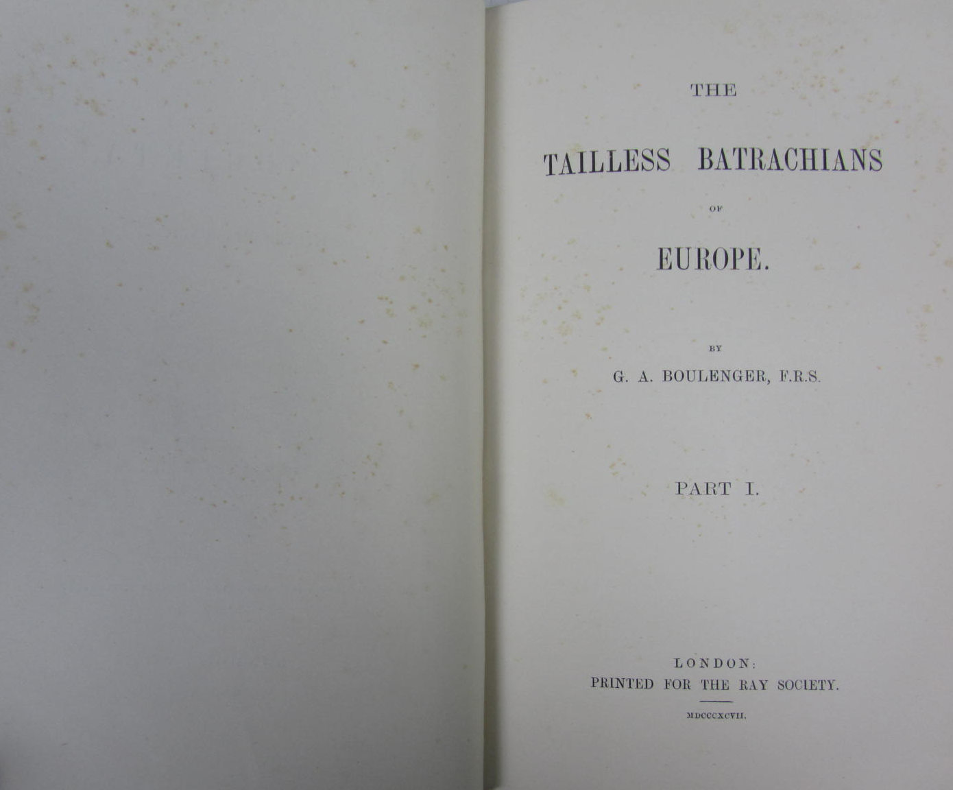 The tailless batrachians of Europe. London: Ray Society, 1897. 2 volumes, 8vo, 23 (of 24) plates (15 chromolithographs and 8 plain) and 6 folding maps, plate vii lacking, original blue cloth gilt, some fading to spines; Bell, Thomas A history of British reptiles, 1839. First edition, 8vo, green cloth gilt, ownership signature to endpaper; Andrews, Charles William A descriptive catalogue of the marine reptiles of the Oxford clay. British Museum, 1910-1913. 2 volumes, 4to, original cloth with British Museum gilt stamps to upper covers, cancelled Edinburgh University library stamps internally; Boulenger, George Albert Catalogue of the snakes in the British Museum, 1893-1896. 3 volumes, 8vo, cloth gilt, bookplates, library stamps; and 2 others, sold not subject to return (10)