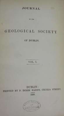 Journal of the geological society of Dublin. Dublin: P.Dixon Hardy, 1838-1864. Volumes 1-10, with volume 6 of new series, 1882-1884. 8vo, half calf, Royal Society of Edinburgh library stamps; sold not subject to return (11)