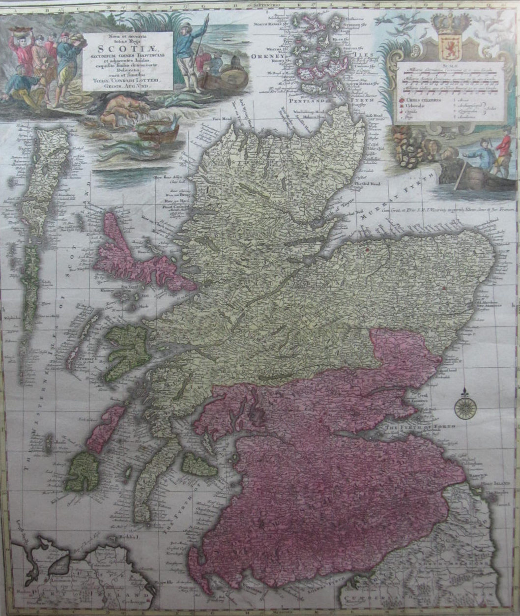 Nova et accurata totius regni Scotiae. [Augsburg, 1740?] Framed and glazed, engraved area c.58x49.5cm, hand-coloured