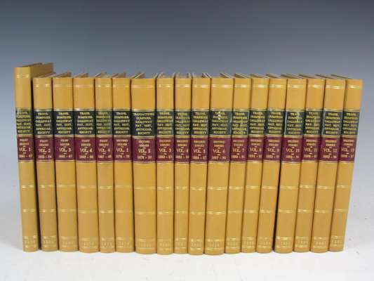 The transactions and the journal of the proceedings of the Dumfriesshire and Galloway scientific, antiquarian and natural history society. Edinburgh, 1862-1868, 1876-1944, 1966-1973. First series volumes 1-4, 6, second series volumes 1-24, third series volumes 1-23, 44-50, with index for 1862-1912, 8vo, plates, modern cloth binding; sold not subject to return (60)