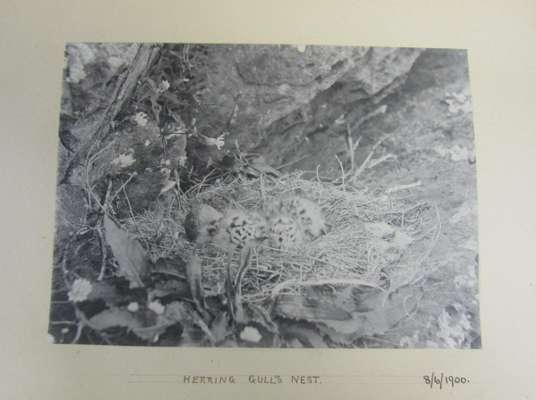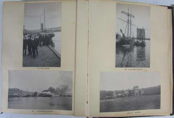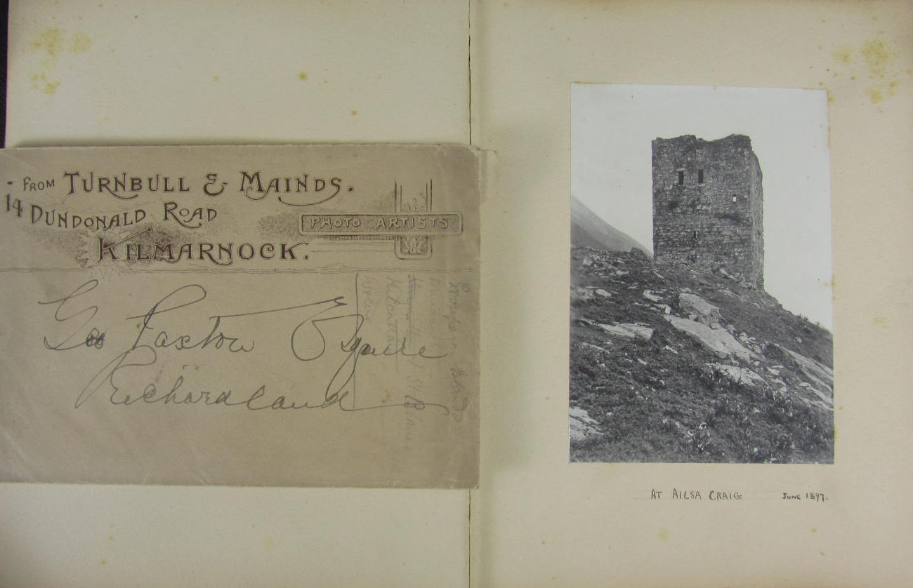 Around 70 mounted photographs, c.1897-1900, between 15x11cm and 9x6cm, depicting a tour around the Firth of Clyde, Arran and the Mull of Kintyre, depicting images of birds, eggs and locations including Ailsa Craig, Saddell Castle, Sanda Lighthouse, Skipness Castle, Tarbert Castle, Bellochantuy, Lossit House, Campbeltown, Oatfield House and Old Keil House, red morocco gilt album, rubbed