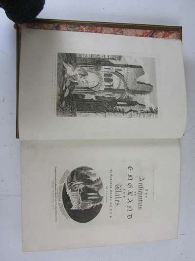 The antiquities of England and Wales, [1783-1797?] 8 volumes, folio, 637 engraved plates and maps, slight dampstaining towards rear of volume 5 [ESTC N36392]; [Idem] Antiquities of Ireland, 1791. 2 volumes, folio, 259 plates, some initial dampstaining to volume 2, [ ESTC T147219]; [Idem] Antiquities of Scotland, 1797. 2 volumes, folio, 190 plates [ESTC N469342]; all published by S. Hooper, uniform gilt tooled contemporary calf, some fading and rubbing, ABPC suggests some plates lacking, sold not subject to return (12)
