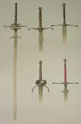 Ancient Scottish weapons. Edinburgh & London: George Waterston & Sons, 1881. Folio, number 261 or 500 copies, 54 coloured plates, original quarter morocco, bookplate, some soiling, rubbed