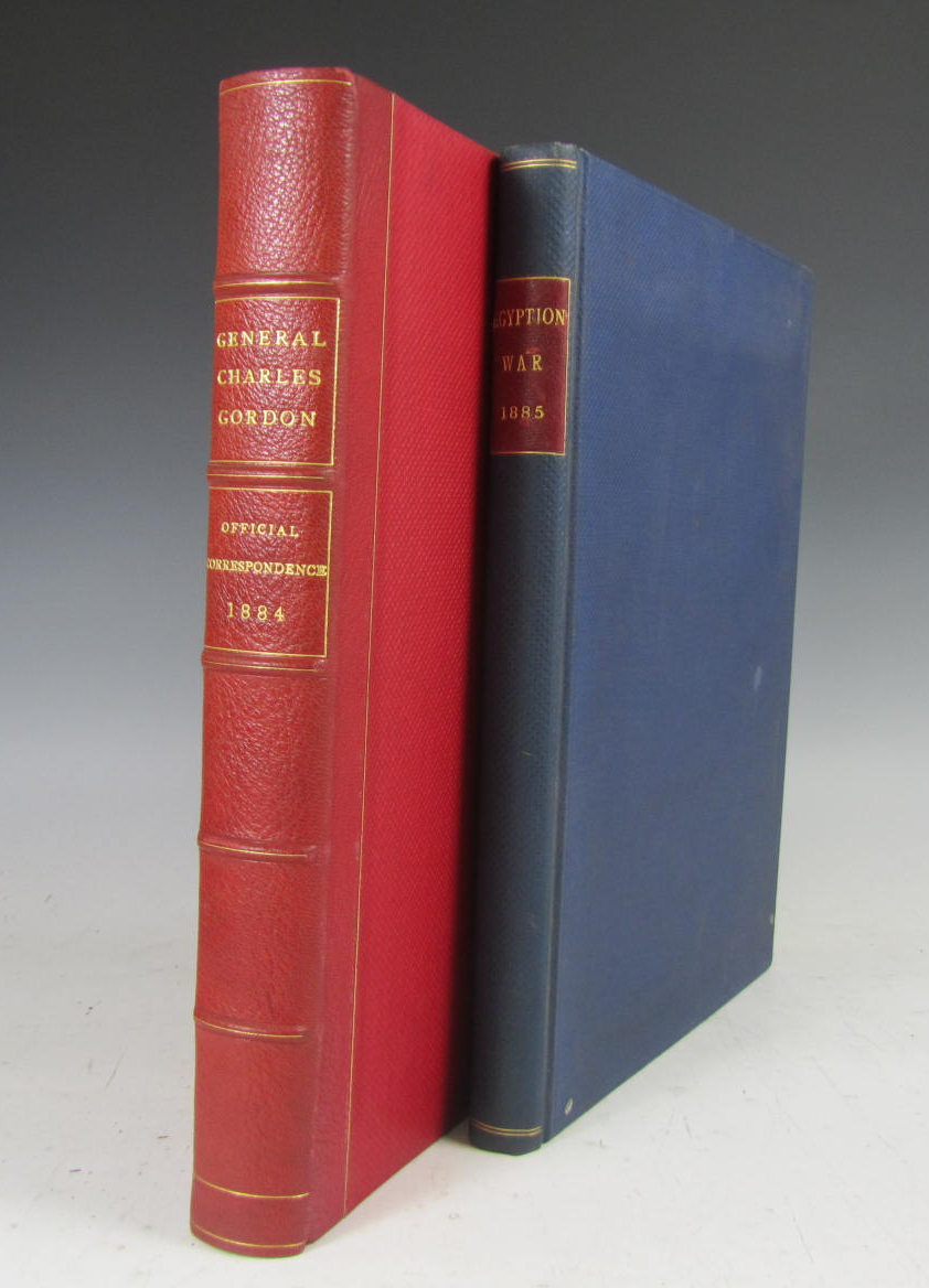 Official correspondence 1884, so titled on spine, printed correspondence, marked Confidential; [2nd album] Egyptian War, so titled on spine, comprising maps (one manuscript), newspaper clippings, ?lithographed copy of message announcing victory near Dulka, several albumen print portraits, &c. (2)