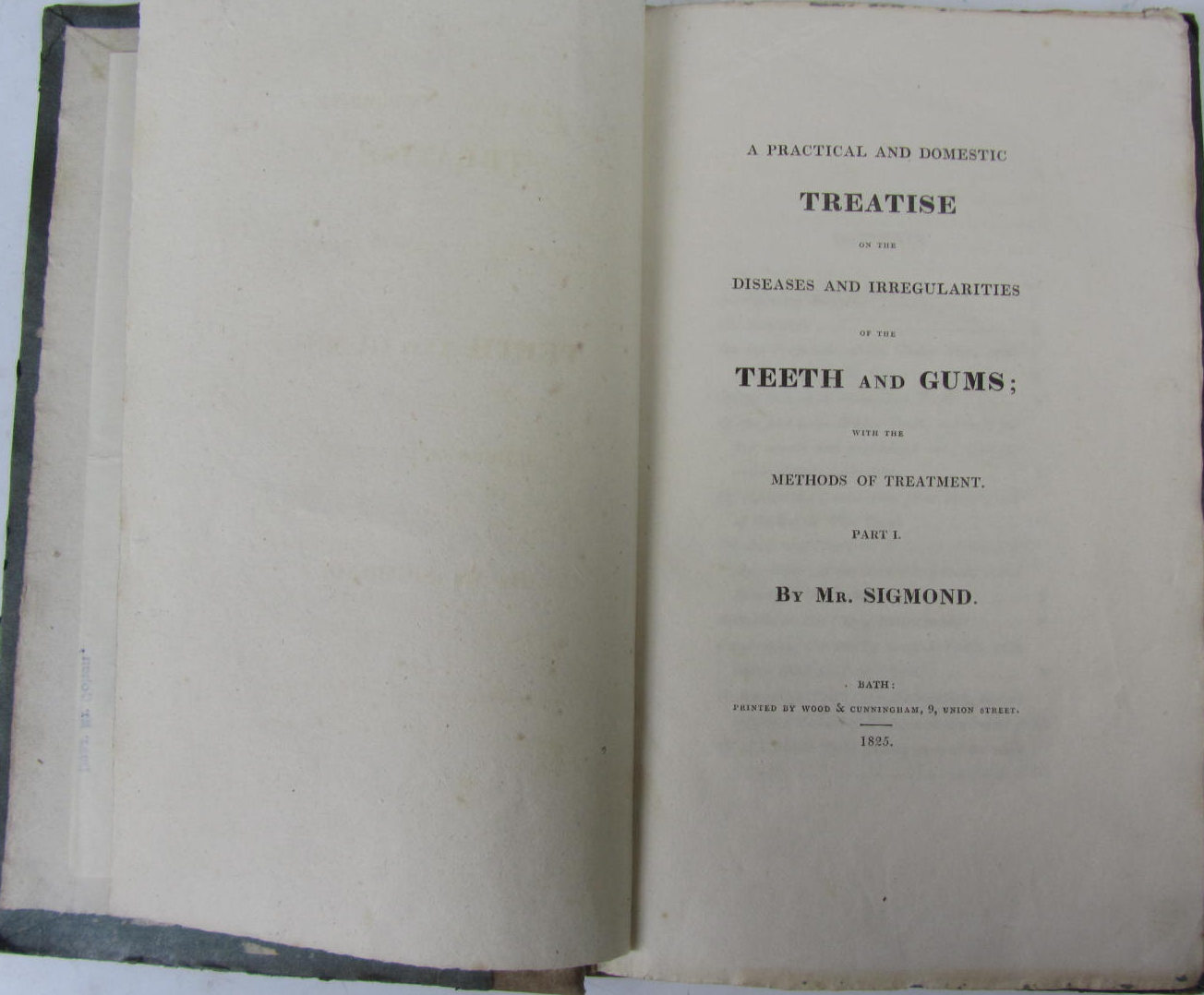 A practical and domestic treatise on the diseases and irregularities of the teeth and gums. Part 1 [all published]. Bath: Wood & Cunningham, 1825. First edition, 8vo, original boards, uncut