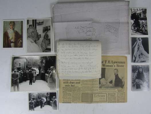 The annotated typed page comprises doubts as to the veracity of some passages of Lawrence's account ("how could Lawrence, soliloquising in the desert circa 1916, speak about Ross of 1922"), & "the last days at Cloud Hill... T.E. was in excellent spirits after having had a miserable time with the press wallahs. He regretted having blacked the eye of one of the pressmen...", and also refers to their joint efforts to ensure a constant supply of hot water for Clouds Hill "for he suffered greatly from malaria in cold weather". The Bodleian Library has a fine archive of T.E. Lawrence manuscripts, including 24 letters from from Lawrence to Chambers, and also the original wrapping, of which a photocopy is included in the present lot, of the parcel of books posted to Chambers on 13 May 1935, only minutes before Lawrence's fatal accident. Chambers died in 1987 at the age of 91.