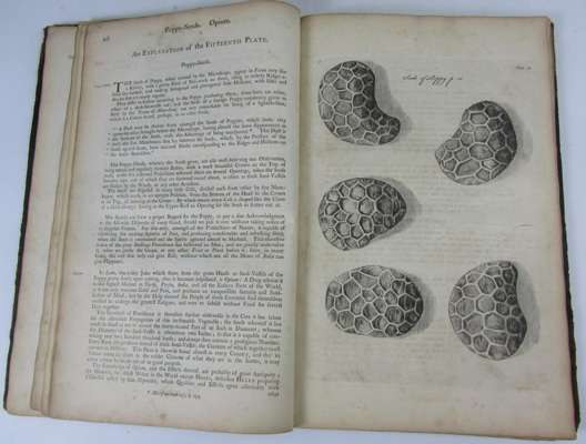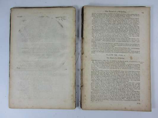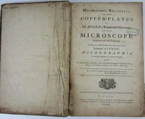 Micrographia restaurata. London: J. Bowles, 1745. Folio, 33 engraved plates, 2 folding, calf, RCSI printed and blind library stamps, offsetting to plates, spotted and soiled, binding broken, plate 21 splitting at fold, very worn, covers detached, slight chipping to fore-edge of title
