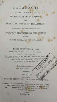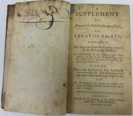 A supplement to Kennedy's Ophthalmographia. 1739, half calf, worn; Kitchiner, William The economy of the eyes. 1824. 2 plates (1 folding), original boards, uncut; boards detached; Stevenson, J. Cataract. 1834, presentation copy from the author, original cloth; Walker, J. The principles of ophthalmic surgery. 1834. Original cloth, lacks spine; Wells, W.C. Two essays, one upons single vision. 8vo, half calf, upper joint cracking; [Weller] [Icones morborum oculi humani. 1825], 4to, 5 plates, 4 hand-coloured, original boards, uncut, spotting, lacks ?title & lower board; Swan, J. On the origins of the visual powers of the optic nerve. 1856. 4to, 9 plates, original cloth, spotting, spine split; sold not subject to return (7)