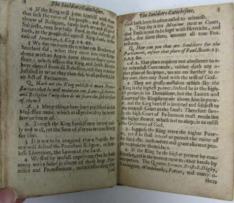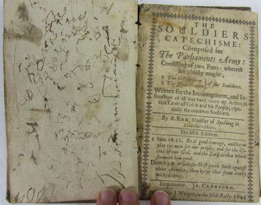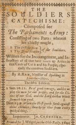 'The Souldiers Catechisme' was written as part of a wider culture of English civil war tracts penned by parliamentarian and royalist army chaplains. Ram was one such parliamentarian army chaplain. The tract poses imaginary questions to a Protestant parliamentarian soldier, who responds: "I fight to recover the King out of the hands of a Popish Malignant Company... I fight for the Lawes and Liberties of my Countrey..."