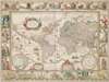 Nova totius terrarum orbis geographica ac hydrographica tabula. [Amsterdam: Blaeu, n.d. but 1631 or later]. 45x57cm, framed and glazed, hand-coloured, bordered by 22 vignettes, 2 inset views of Polar regions, 3 decorative cartouches, 5 compass roses and 'Corea' as an island, laid-down onto board with discreet repair to base of centre-fold and around edges, slightly dust-soiled and spotted