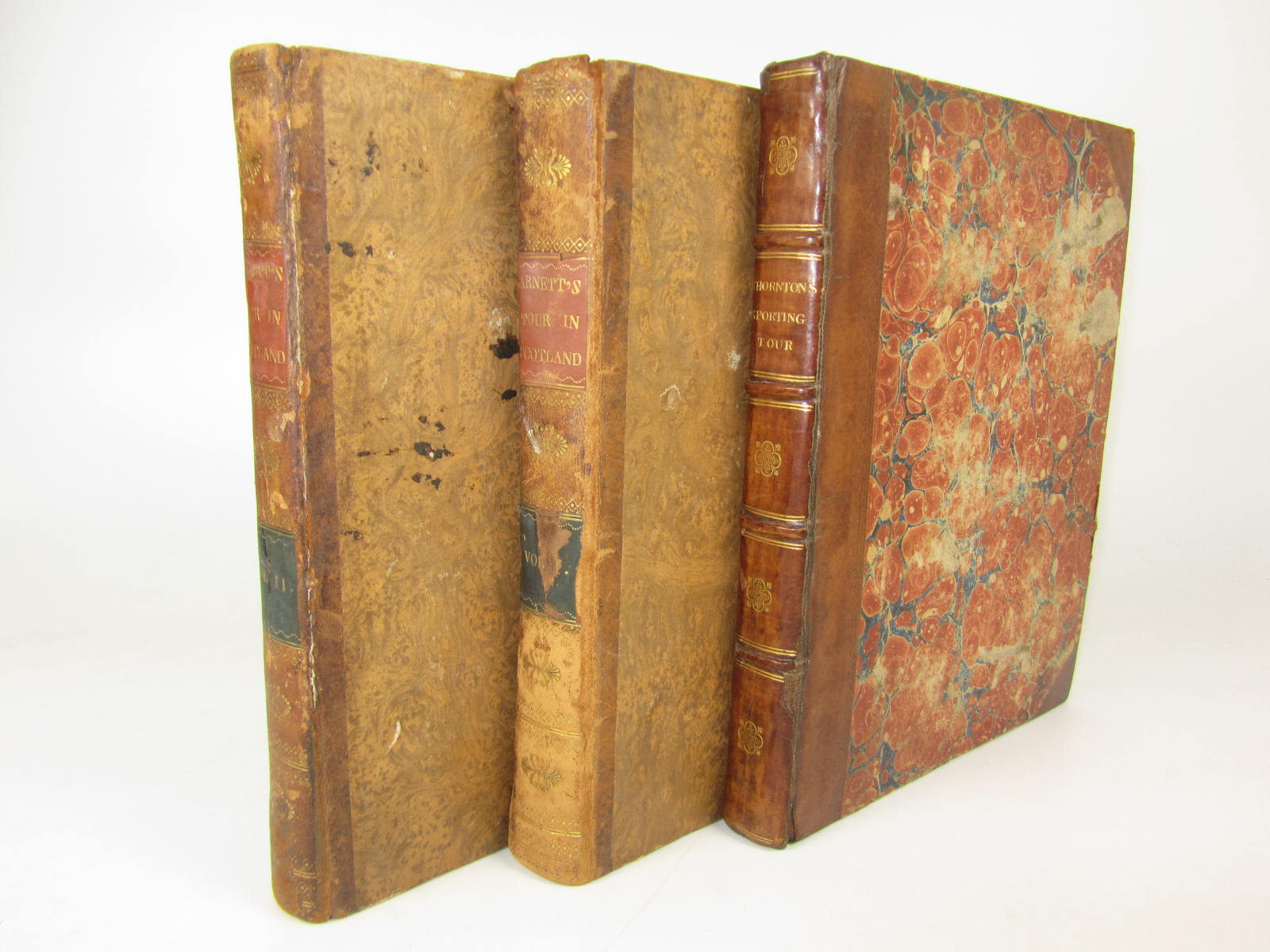 A sporting tour through the northern parts of England. London, 1804. 4to, 16 engraved plates, half title, contemporary half calf, neatly rebacked retaining spine; Garnett, T. Observations on a tour through the Highlands. London, 1811. 2 volumes, 4to, folding map and aquatint plates, contemporary half calf, spotting, worn; sold not subject to return (3)
