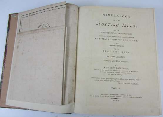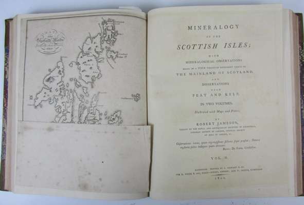 Mineralogy of the Scottish isles. Edinburgh: B. White & W. Creech, 1800. First edition, 4to, 2 volumes in one, 13 engraved maps and plates, 2 folding, errata leaf, nineteenth century half calf, spine gilt, morocco lettering pieces, occasional light spotting