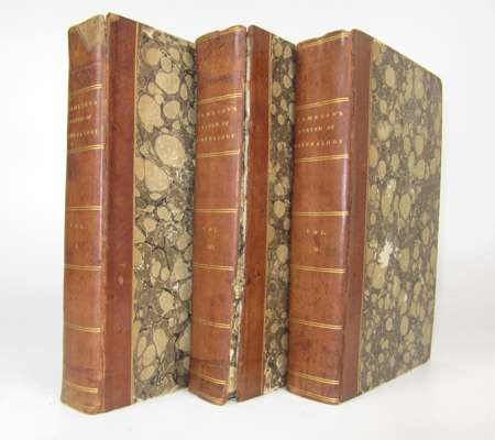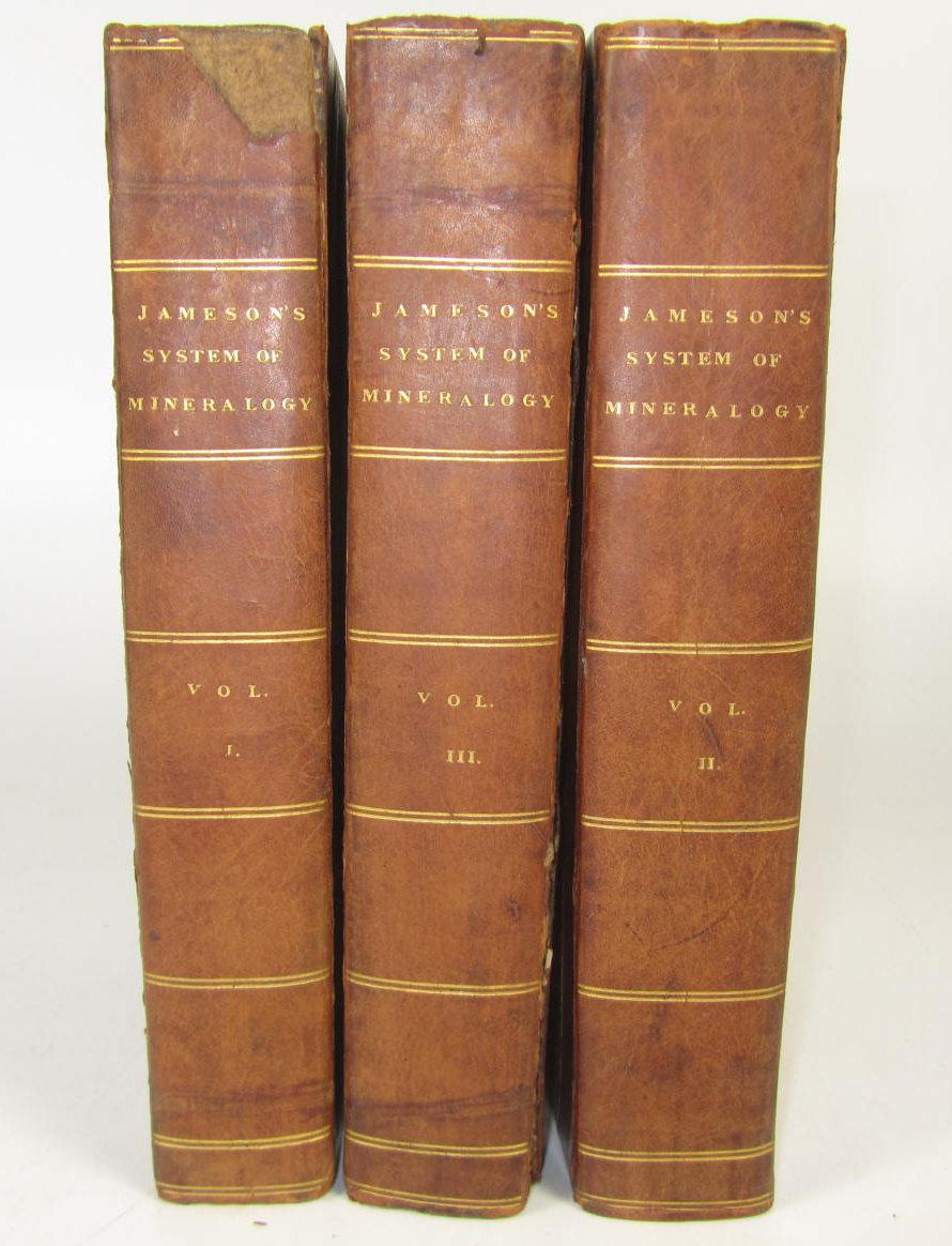 A system of mineralogy. Edinburgh: A. Constable, 1820. Third edition, 3 volumes, 8vo, 12 folding plates, contemporary half calf, one cover detached, head of one spine worn