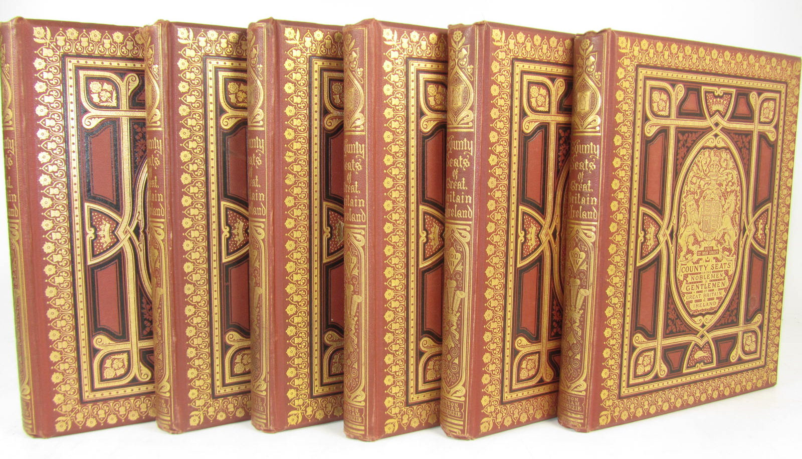 A series of picturesque views of seats of noblemen and gentlemen of Great Britain and Ireland. [c.1880]. 6 volumes, 4to, 240 coloured plates, original cloth gilt, ownership inscription on endpaper of volume 1 scored through