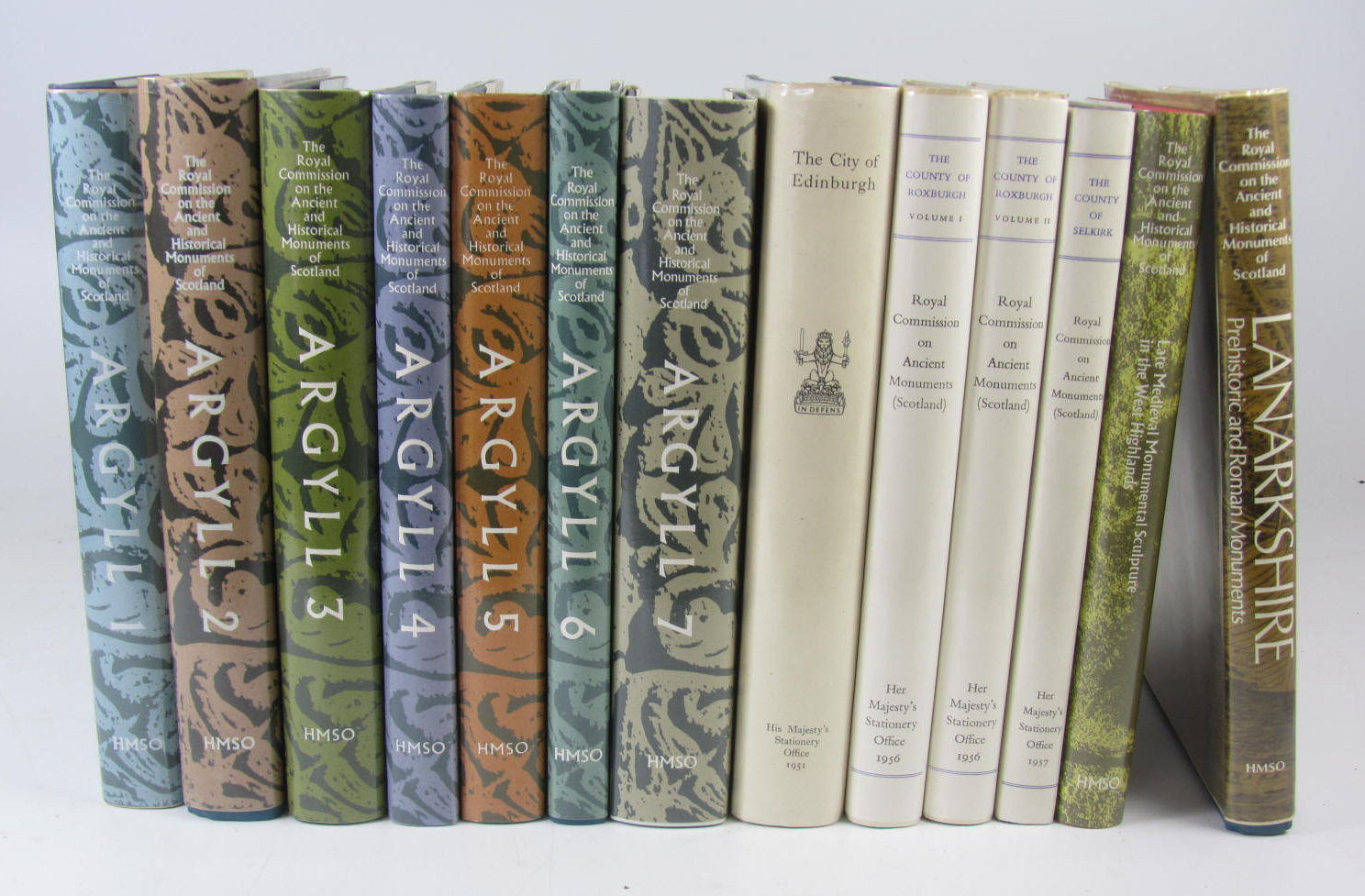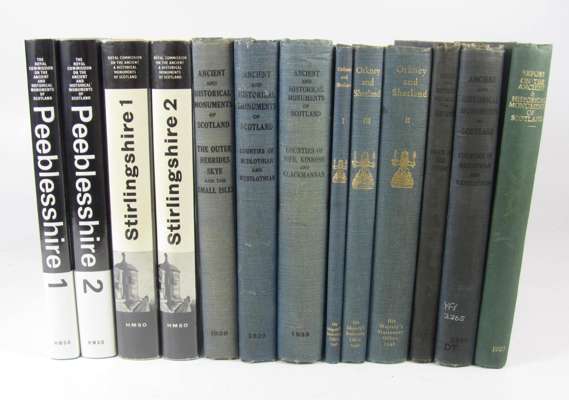 Argyll, 1971-1992. 7 volumes, 4to, blue cloth gilt, dust-jackets; The city of Edinburgh, 1951. 4to, blue cloth gilt, dust-jacket price clipped; The county of Roxburgh, 1956. 2 volumes, 4to, blue cloth gilt, dust-jackets; The county of Selkirk, 1957. 4to, blue cloth gilt, dust-jacket; Stirlingshire, 1963. 2 volumes, 4to, blue cloth gilt, dust-jackets; Peebleshire, 1967. 2 volumes, 4to, blue cloth gilt, dust-jackets; Late medieval monumental sculpture in the West Highlands, 1977. 4to, red cloth gilt, dust-jacket; Lanarkshire, 1978. 4to, blue cloth gilt, dust-jacket; and a collection of titles without dust-jackets; sold not subject to return (26)
