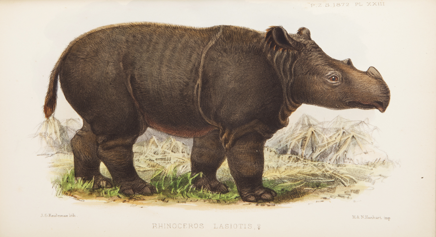 Proceedings. London, comprising years: 1831-1839, 1841-1847, 1863, 1866, 1871-1872, 1875, 1877, 1879-1880, 1885-1919, 1921, 1946-1965 (various bindings, many with bookplates and stamps of Robert Washington Oates, or with Holmesdale Natural History Club stamps); with a selection of parts between 1860 and 1946 (predominantly in original wrappers, several with Perth Museum stamps); many engraved plates, many hand-coloured; [Continued as...] Journal of zoology, proceedings of the Zoological Society of London, 1965-1975. 32 volumes, uniform black cloth with red morocco gilt labels; 5 index volumes; Flower, S.S. List of vertebrated animals..., 1929. 2 volumes, 8vo; and 6 other related volumes, some with Edinburgh University Anatomical Library stamps and bookplates; sold not subject to return (large quantity)