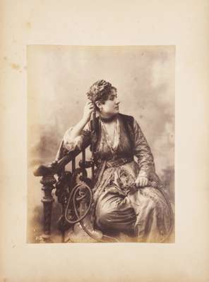 23 mounted albumen prints of scenes and people in Istanbul, 215x270mm, by Sebah & Joaillier, late 19th century, in worn red half morocco album entitled 'Constantinople'