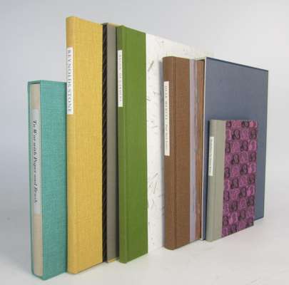 Of gardens. Netherton: The Fleece Press, 1993. 4to, limited to 220 copies, perspex engravings by Betty Pennell, cloth-backed floral paper boards; Harvey, Michael Reynolds Stone. Engraved lettering in wood. The Fleece Press, 1992. 4to, limited to 275 copies, quarter cloth & paste paper boards, slipcase; Yorke, Malcolm To war with paper & brush. Captain Edward Ardizzone, Official War Artist. The Fleece Press, 2007. Oblong 4to, limited to 700 copies, buff cloth, slipcase; Boulton, Janet Dear Mercia. Paul Nash letters to Mercia Oakley, 1909-18. The Fleece Press, 1991. 8vo, limited to 300 copies, plates, illustrations, cloth-backed patterned boards, slipcase; Lee, Brian N. Bookplates by Simon Brett. The Fleece Press, 1989. 8vo, limited to 220 copies, illustrations, cloth-backed paper boards, fine copies (5)