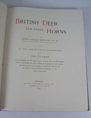 British deer and their horns. London: Henry Sotheran, 1897. Folio, number 48 of 100 copies, signed by the author, frontispiece and 10 plates, original half morocco, some light foxing and slight dampstaining, some soiling and rubbing to covers and spine