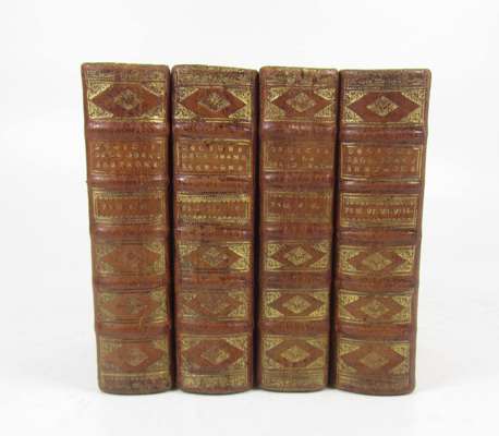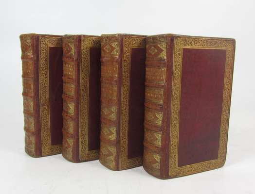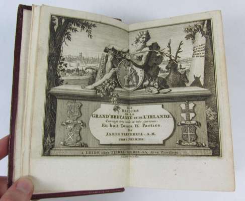 Les delices de la Grande Bretagne et de l'Irlande... Leiden: Pierre van der Aa., 1707. 8 volumes in 4, small 8vo, engraved volume titles, plates and maps, title-pages in red and black, contemporary red morocco, spine with raised bands, gilt, g.e., some occasional browning, spotting and very light dampstaining (4)