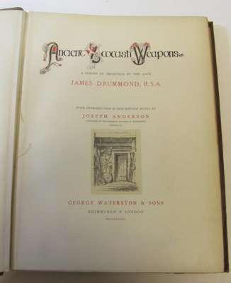 Ancient Scottish weapons. Edinburgh & London: Geroge Waterston & Sons, 1881. Folio, number 349 of 500 copies printed for sale, 54 colour plates, original quarter morocco gilt, bookplate of the Honourable Hew Dalrymple to paste-down endpaper, some rubbing, slight fading
