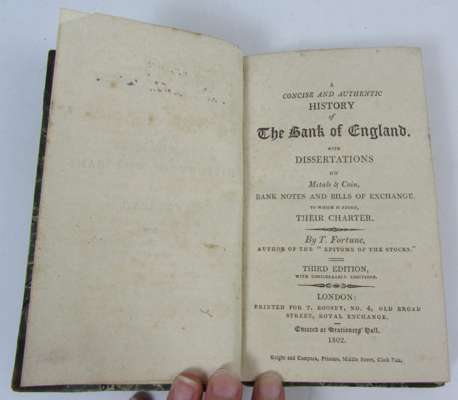 A concise and authentic history of the Bank of England: with dissertations on metals & coin, bank notes and bills of exchange. Third edition, 12mo, contemporary half calf, marbled boards, slight general paper discolouration