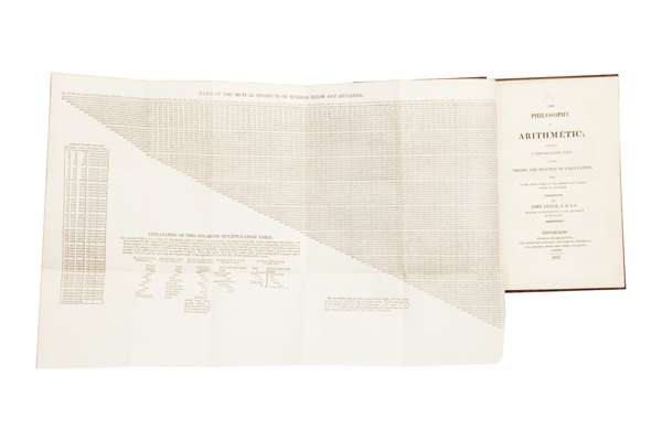 The philosophy of arithmetic; exhibiting a progressive view of the theory and practice of calculation. Edinburgh: for Archibald Constable, 1817. First edition, 8vo, folding table as frontispiece, other tables, abacus calculations, etc. in the text, 19th century light tan calf, covers with blind tooled borders, red morocco lettering piece