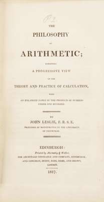 Note: Better remembered as the first person to create artificial ice, Sir John Leslie (1766 - 1832) was a Scottish mathematician. His Philosophy of Arithmetic was one of his more famous publications. There was a second edition in 1820.