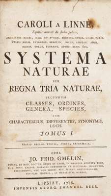 Note: The original edition of the posthumous Gmelin edition of the Systema Naturae, adding new material, in particular with regards to the discoveries in the field of Zoology made over the previous 20 twenty years. This edition includes descriptions of numerous species from Cook's voyages. Gmelin revised the Systema naturae, beginning in 1788. By introducing new and acceptable binominals he was able to obtain authorship of numerous species, and many New Zealand molluscs and fish collected on Cook's voyage bear his names.