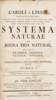 Systema naturae per regna tria naturae: edition decima tertia, aucta reformata, cura Jo. Frid Gmelin. Leipzig: impens. Georg. Emanuel Beer, 1788-93. Thirteenth edition, 3 volumes in 9, with three folding engraved plates of minerals at the end of volume 3, contemporary quarter roan, vellum corners, marbled boards, uncut, rubbed and worn, with several boards detached, slight discolouration and spotting due to the poor quality of the paper