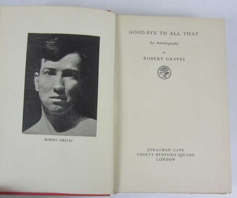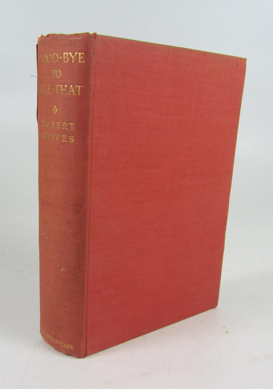 Good-bye to all that, an autobiography. London: Jonathan Cape, 1929. First edition, first issue, 8vo, frontispiece portrait and 7 plates (1 double), orange cloth gilt, ownership inscription to front free endpaper, shelf lean, some splitting to lower joint affecting cloth