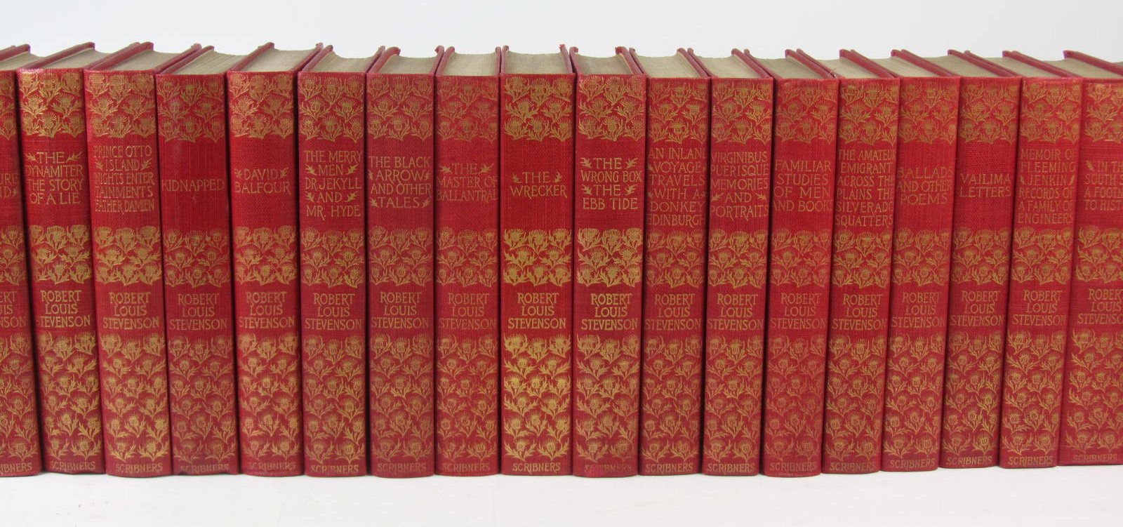 The novels and tales... New York: Charles Scribner's Sons, 1903. 26 volumes, red cloth gilt, t.e.g., edges untrimmed; Burns, Robert The national Burns, [c.1900] 4 volumes, 4to, green cloth gilt; MacDonald, George A cabinet of gems..., 1891. 12mo, green cloth gilt, inscribed, "W.C. Davies, with love from George MacDonald..., 1892", with framed photograph thought to be William Carey Davis; [Galt, John] The Spaewife... Edinburgh, 1823. 3 volumes, 12mo, half calf; [Idem] Sir Andrew Wylie, 1822. 3 volumes, 12mo, half calf; The Aberdeenshire lintie... Aberdeen, 1854. 8vo, cloth; Scott, Sir Walter waverley novels, 1867. 4 volumes, 8vo, half calf gilt; and a selection of works by Scott, many first editions; a collection of aquatints and other engravings illustrating Scott's works; and a selection of other works by Galt and Shakespeare, sold not subject to return (quantity)