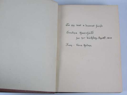 Note: Vera Holme, 1881-1969, was a talented violinist and singer, and member of the Actresses' Franchise League, a group open to all theatre professionals with the aim to promote women's suffrage through the medium. Holme was also a member of the Women's Social and Political Union and, in 1909, was appointed as Emmeline Pankhurst's chauffeur, despite Sylvia Pankhurst having described Holme as, "... a noisy, explosive young person, frequently rebuked by her elders for lack of dignity."