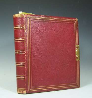 An autograph album compiled by Mrs Wyndham with the signatures, many with quotations by fellow actors and actresses including Henry Irving, Charles and Ellen Kean, Fanny Stirling, Daniel Bandmann, Mary Frances Scott-Siddons, Kate J. Bateman Crowe, Ada Cavendish, J.B. Blackstone, John Lawrence Toole, Charles Neaves, William Charles Macready, Andrew Halliday, musicians and composers including Sir Charles Halle (with 5 bars of music), W.S. Gilbert (with self portrait caricature as Bab), and artists, Henrietta and Edward Ward, Sam Bough (with watercolour study for a picture of Cazow Forest 1851), William Leighton Leitch (with study of a Swiss backdrop for the operetto Maid of Switzerland), Sir Edwin Landseer (with ink sketch, cropped, of Edward Parratt Esq.), William Powell Frith (with ink sketch of a head), Walter Williams (with 2 small ink sketches, one of Mumbles Castle, S. Wales), W. Holman Hunt, George Cruikshank, Keeley Hallswelle (with watercolour sketch of a dead figure), Kenneth Macleay (with sketch of Glen Cloy, Arran, 1864), William McTaggart, Charles Lees, John Hutchison & many others, contemporary red morocco, upper hinge broken, c.1870-1880