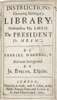 Instructions concerning erecting of a library. London: printed for G. Bedle and T. Collins, 1661, small 8vo, A1 title; A2a-A7a dedication; a7B "To the reader..."; A8a "A tale of...; A8b Latin lines; B1a-G7b (pp.1-94) text; G8 (pp.95-96) "The copy of a letter sent to... Dr Barlow, lacking errata leaf, later half calf gilt, red label gilt, rubbed at edges and to backstrip, lacking original endpapers, small ms note bound in at front, bookplate