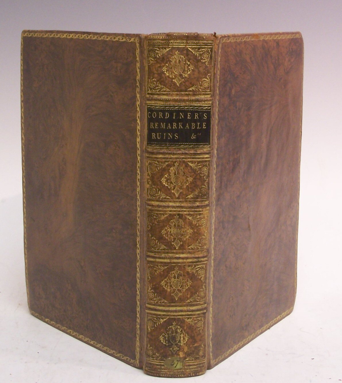 Remarkable Ruins and Romantic Prospects of North Britain. London: P. Mazell, 1788, first edition, 4to, volume 1 only, engraved title, frontispiece and 96 engraved plates, contemporary tree calf gilt, spine gilt, black morocco lettering piece, armorial bookplate of Thomas Fraser Duff
