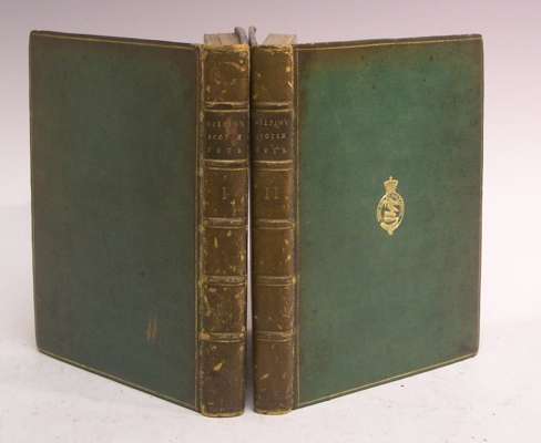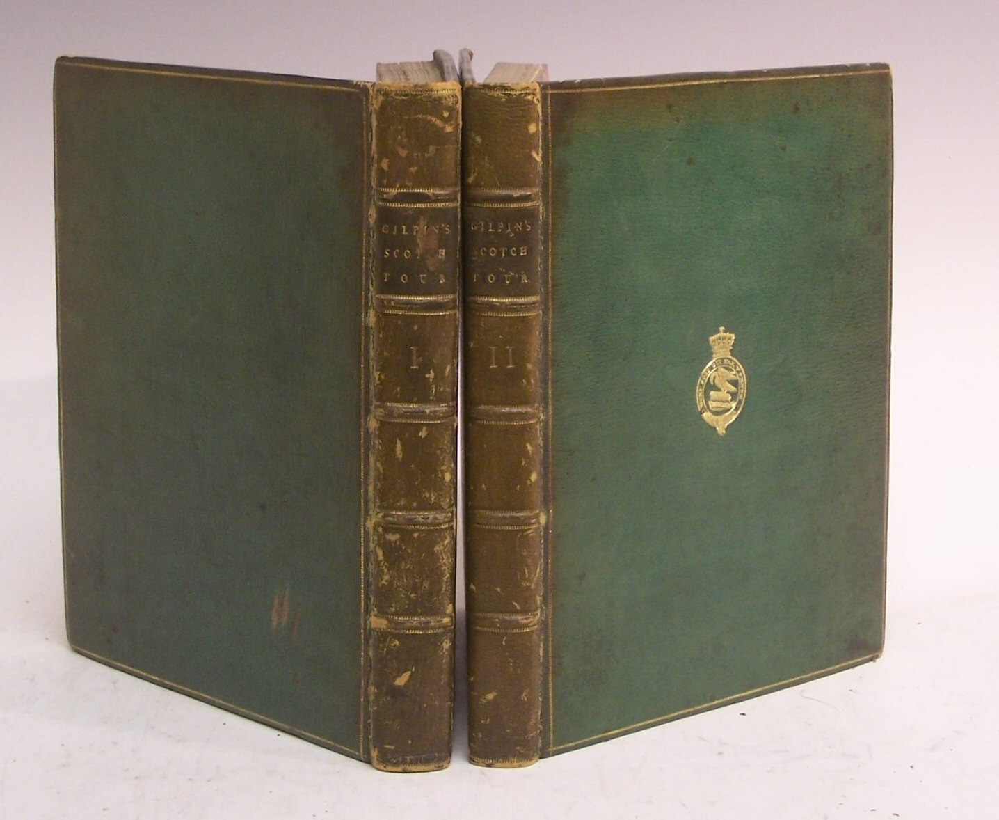 Observations relative chiefly to Picturesque Beauty, made in the year 1776. London: R. Blamire, 1789, first edition, large paper copy, 2 volumes, 8vo, 34 tinted aquatint plates, 1 table and 5 maps, contemporary green morocco, gilt arms of Lord Towneley on sides, spine gilt, bookplates of Lord Towneley, g.e., spine slightly discoloured and joints lightly rubbed