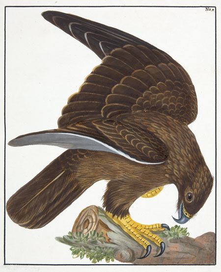 The Birds of Great Britain, with their Eggs, accurately Figured. London: for the Author, 1789-1794, 7 volumes, 4to (335 x 258mm.), 322 original body-colour paintings by Lewin, occasionally heightened with gum arabic, (270 of birds, 52 of eggs) 23 paintings in volume 1 with Lewin's stamp erased from lower margins, contemporary English marbled calf gilt, covers with double gilt fillet border enclosing greek-key roll, flat spines gilt in compartments with two birds perched on the rim of a chalice, green morocco lettering pieces, red morocco volume labels with green morocco onlay, gilt turn-ins, marbled endpapers, bound without plate 171*, rebacked, original spines laid down with occasional repairs to head and foot, neat repairs to corners