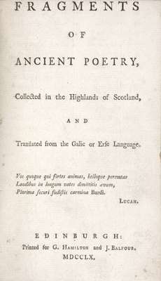 Note: This was the first of the "Ossianic" creations; it was the acceptance of these fragments as genuine remains of ancient epics that led Macpherson to compose Fingal and Temora.
