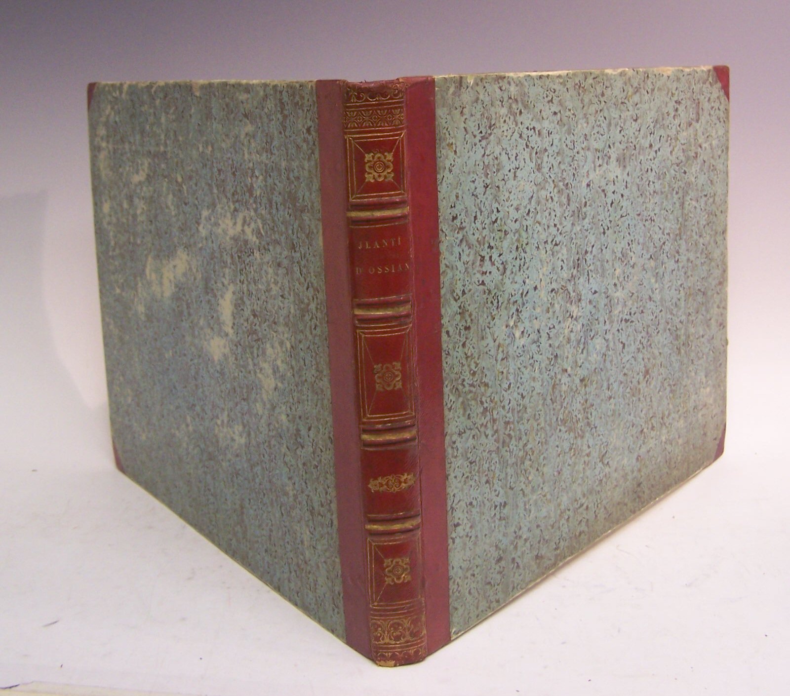 I Canti d'Ossian Pensieri di un Anonimo. Disegnati ed incisi a contorno. Venice: Giuseppe Battagia, Tipografia d'Alvisopoli, 1817, oblong folio, engraved calligraphic title, 48 engraved plates, errata leaf, contemporary red half morocco gilt, marbled sides