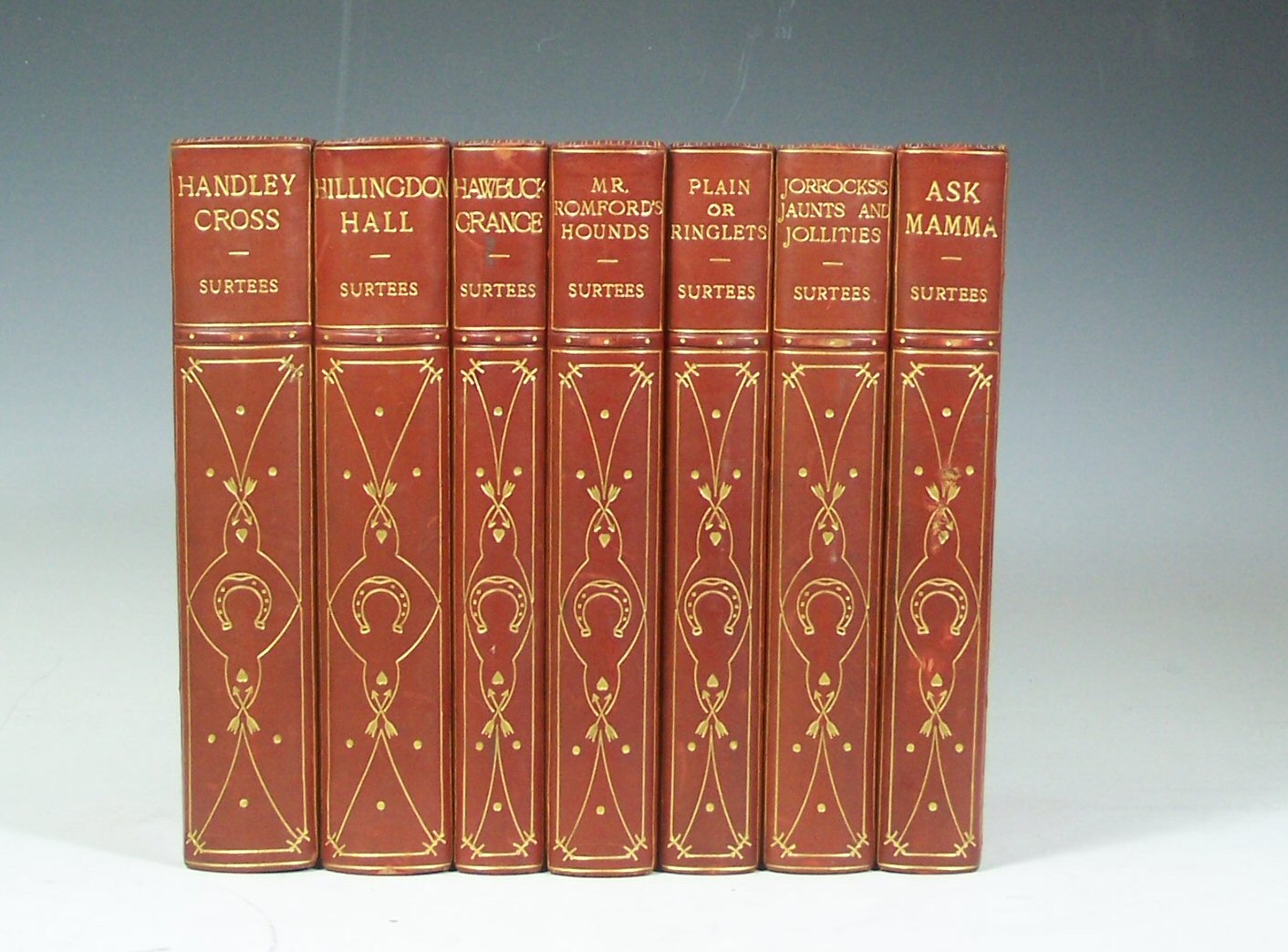 [The Sporting Novels] London: J.C. Nimmo, 1899 and Bradbury, Agnew and J. Routledge, 7 volumes, 8vo, hand-coloured plates after John Leech and others, contemporary red half morocco gilt by Sotheran, spines gilt, t.e.g., spines very slightly faded (7)