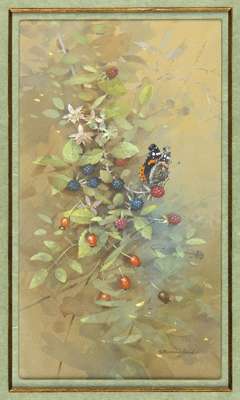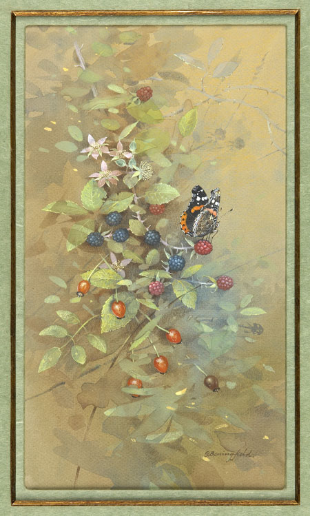 Red Admiral, original watercolour, signed, approx 18cm by 34cm, framed and glazed